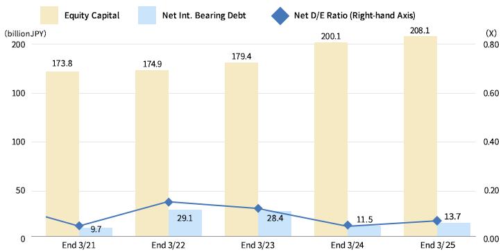 (*4)净 D/E 比率 = (国际负债 – 现金和存款) / 股本较低的指标表明财务状况较好。
